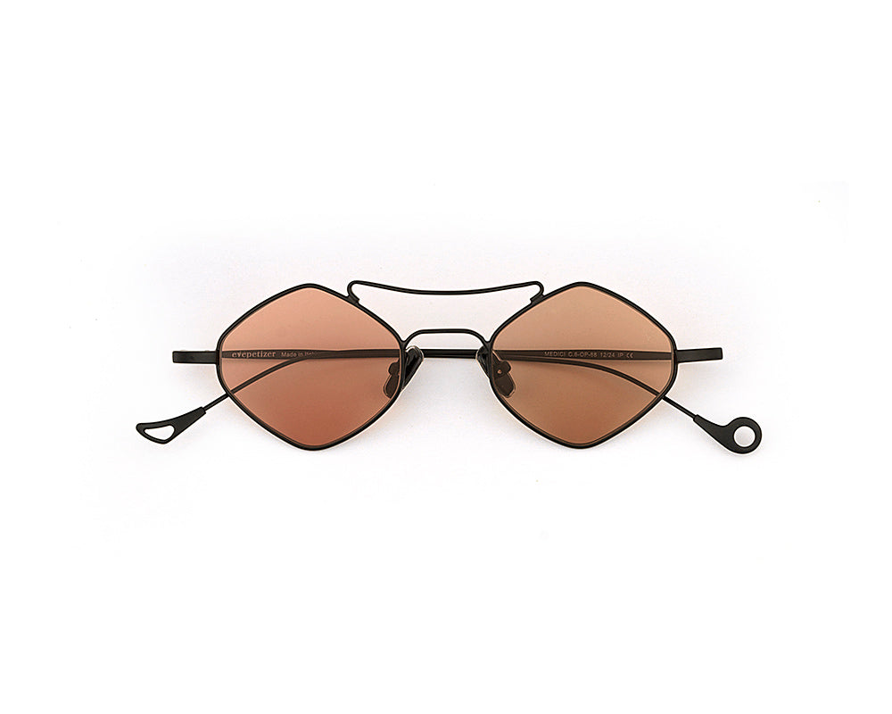 EYEPETIZER MEDICI C.6-OP-68 12/24 unisex sunglasses consist of black metal frame in polygonal shape and double bridge. Their lenses are brown providing 100% protection from UV radiation.