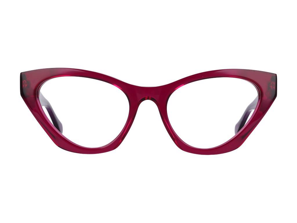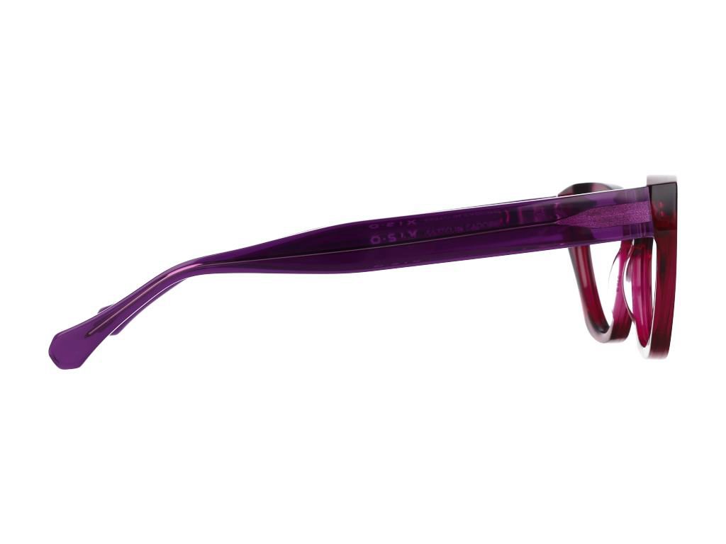 O-SIX OV-158 025 5319 women's eyeglasses are handmade and consist of fuchsia - purple acetate frame in butterfly shape and acetate temples in purple color.
