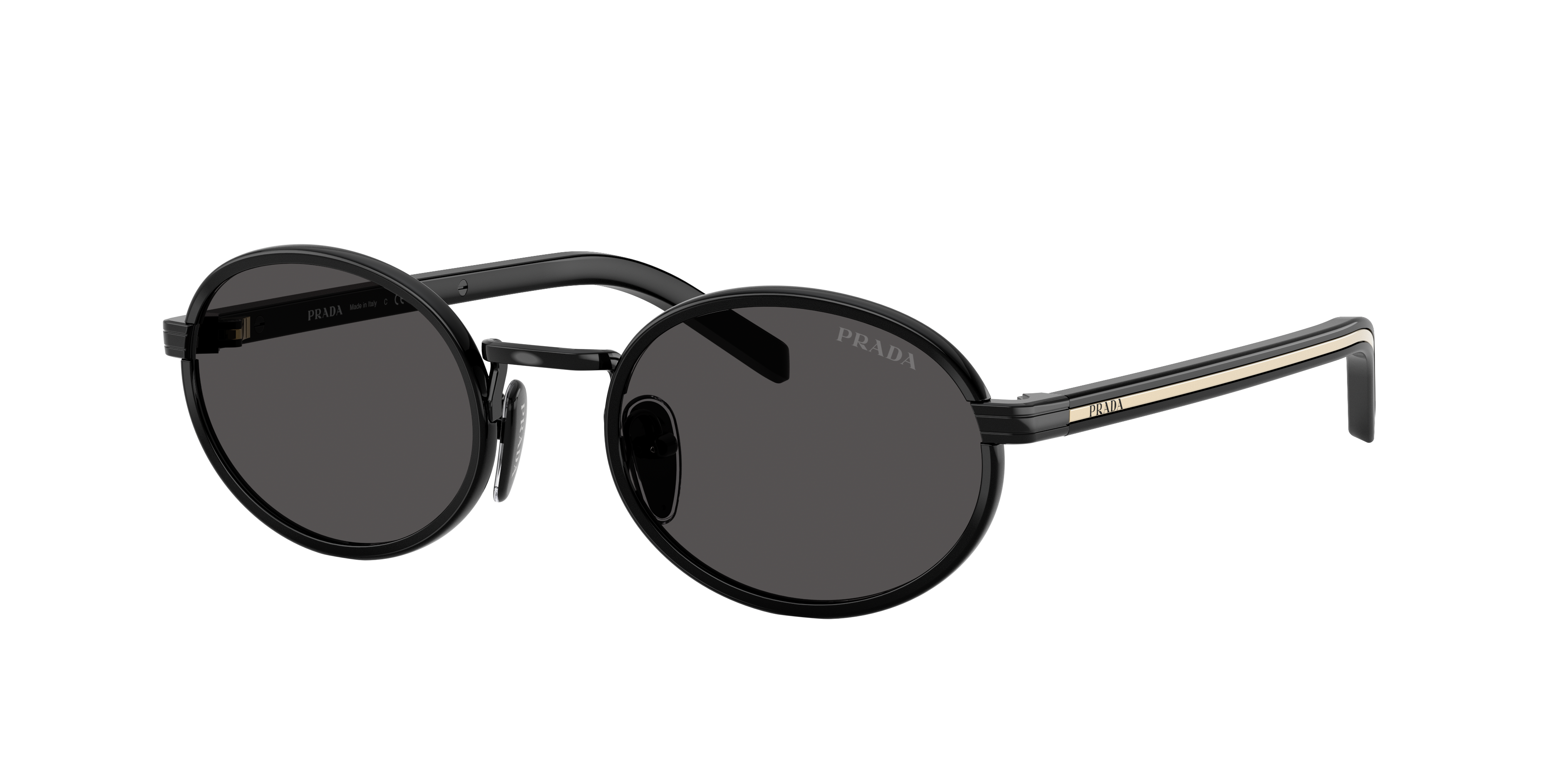 PRADA SPR B56S AAV08Z 5220 women's sunglasses consist of black metallic frame in oval shape. Their lenses have dark grey color inner coated Category 3, providing 100% protection from UV radiation.