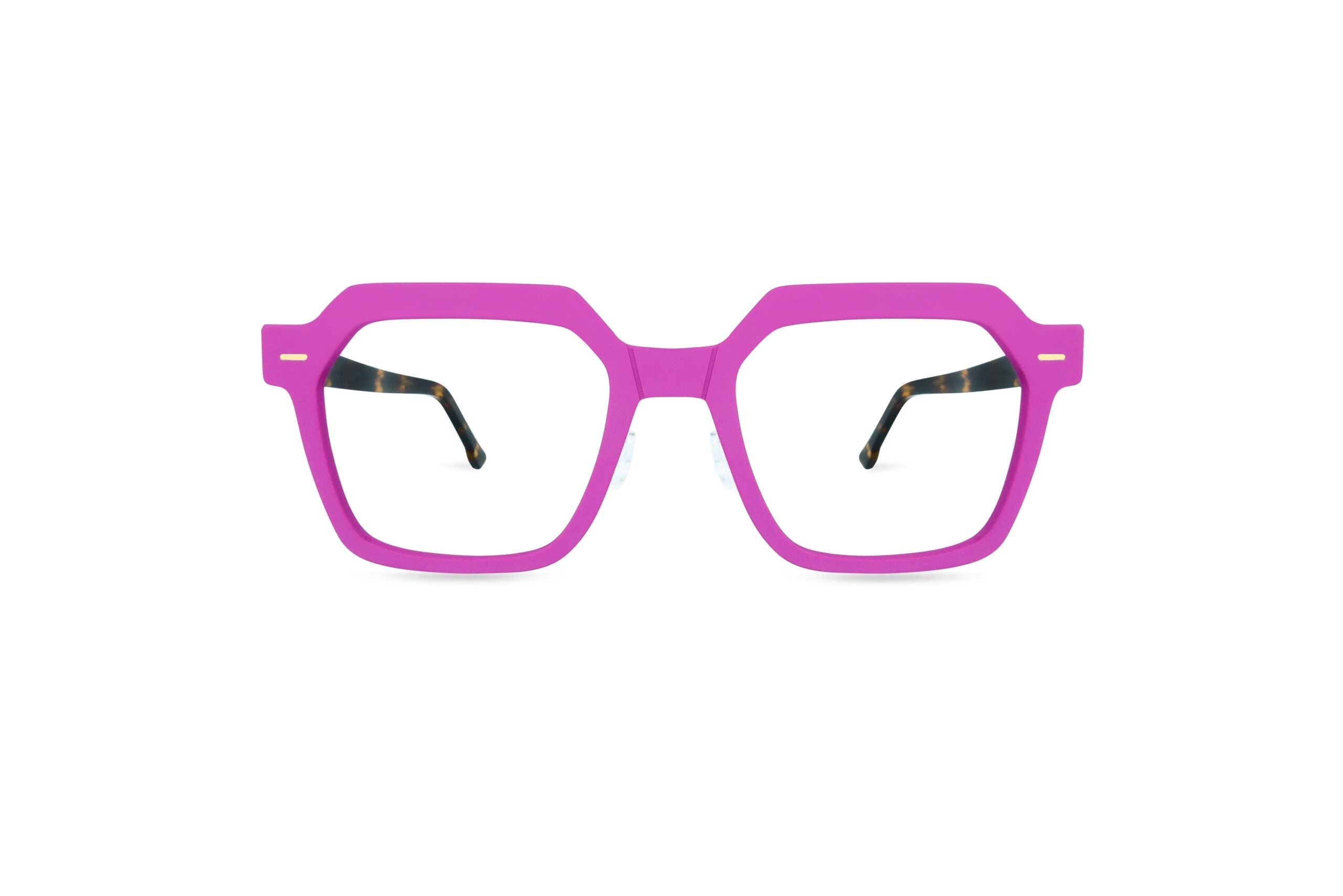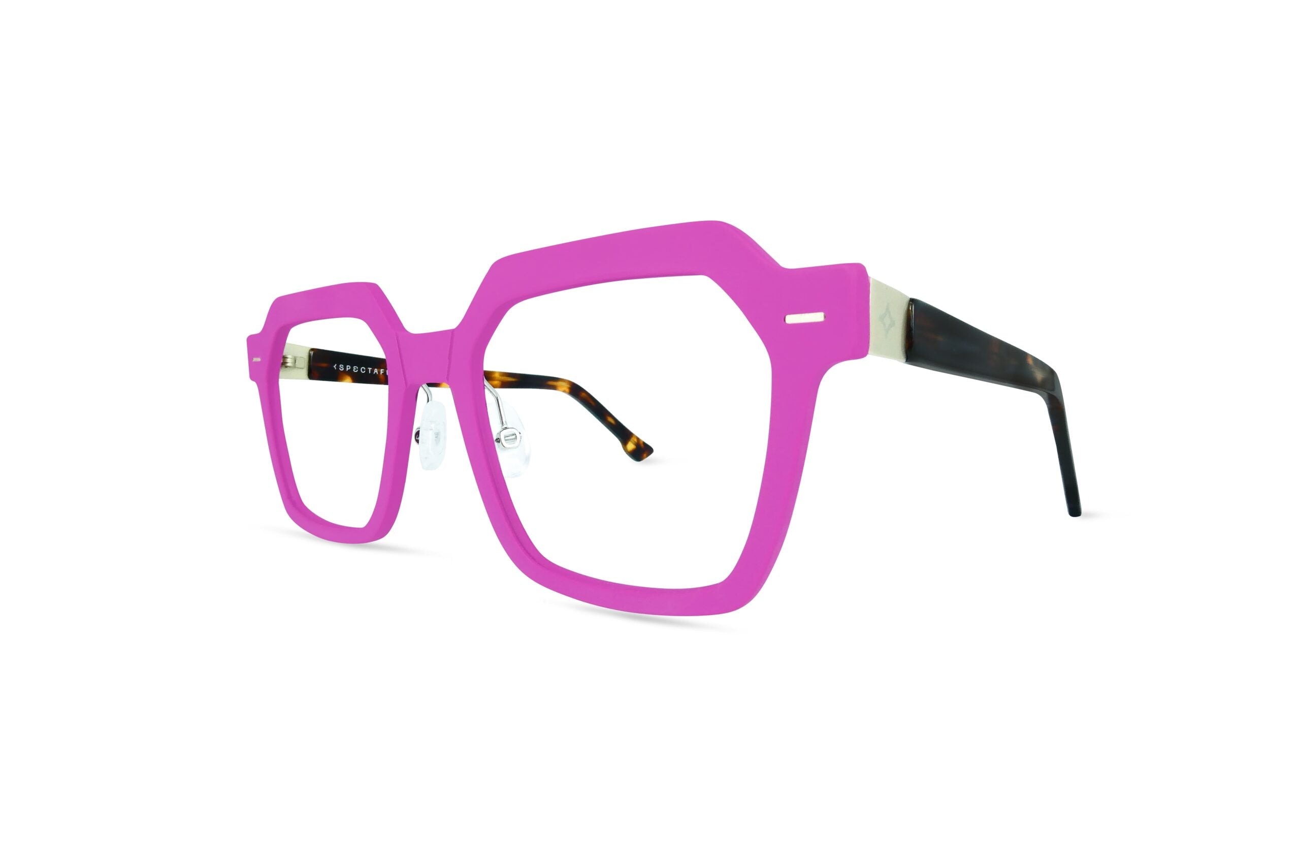 SPECTAFUL SOLEA 3 5121 women's eyeglasses have a square-polygonal shape in fuchsia color with brown tortoise temples. They are extremely light, only 8 grams, and are made in Italy with high quality materials. In particular, steel and technopolymer work in sunergy guranteeing an extremely strong, durable and slim product.